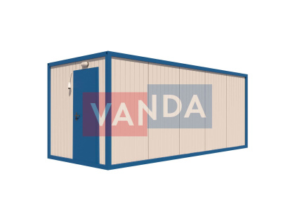 Контейнер состоит из металлического сварного основания. Стены изготовлены из сэндвич-панелей с прокладкой утеплителя. Крыша покрыта крашенным холоднокатаным металлом 1,2 мм. Помещение обустроено пароизоляцией при помощи технической пленки, которая проложена на полу и потолке. Внутренняя облицовка потолка выполнена из ПВХ-панелей, пол – из шпунтованной доски. Вход в помещение оборудован запирающейся металлической дверью.
